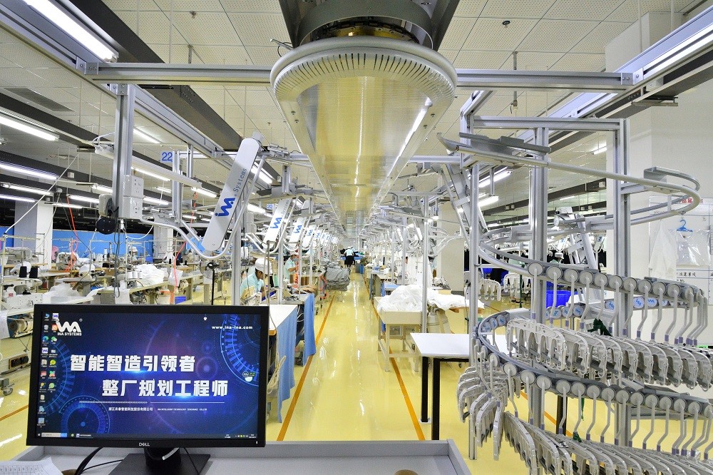除了面料染色的智能化改造,圍繞服裝的設計、研發(fā)、生產(chǎn),元首集團也正在加快變革,通過探索和引進自動化縫制單元、智能吊掛系統(tǒng)、柔性整燙系統(tǒng)、自動立體倉儲和物流配送系統(tǒng),建立生產(chǎn)流程的MES系統(tǒng)管理,提高生產(chǎn)效率。